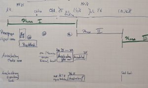 Der „Leitfaden“ ist fertig, die Mentor:innen sind benannt. Bei der Auswahl der Mentor:innen kommen sowohl regionale wie persönlich-fachliche Aspekte zum Tragen. Idealerweise können wir in der dritten Phase an vier Standorten den Leitfaden erproben. Die benannten Mentor:innen arbeiten an einem langen Wochenende mit dem Leitfaden und bereiten sich auf ihre Aufgabe der Begleitung und Anleitung vor. Parallel zu diesem Einarbeitungsprozess wird eine Ausschreibung für „neue“ Fortbildner:innen formuliert, die sich als Teilnehmende für die Erprobung interessieren. Pro Mentor:in werden zwei Teilnehmende zugeordnet, sodass bei acht Mentor:innen 16 Teilnehmende profitieren können.